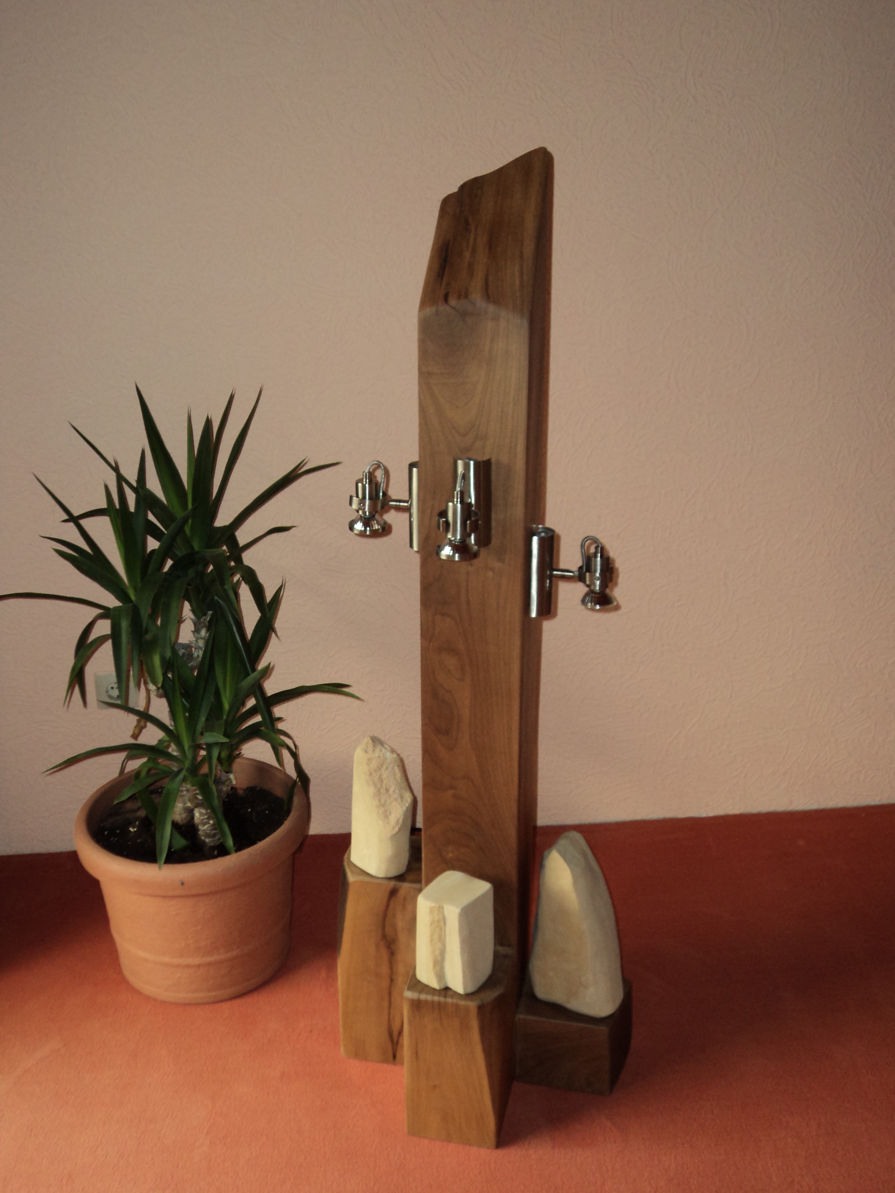 Die Sockel aus edlen Hölzern werden ebenso wie die Steine in Handarbeit gefertigt.